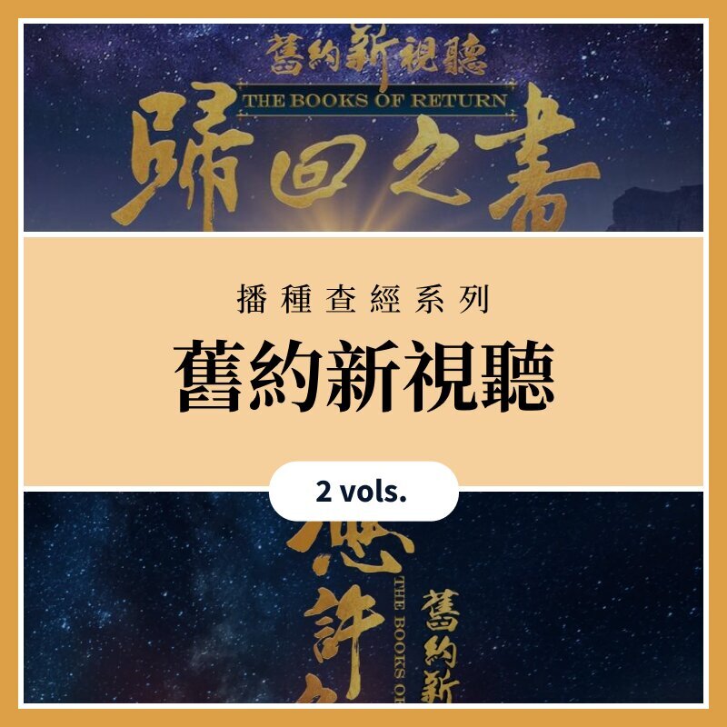 《播種查經系列-舊約新視聽》由兩冊組成:《應許之書》和《歸回之書》,分別涵蓋《約書亞記》、《士師記》、《路得記》和《以斯拉記》、《尼希米記》、《以斯帖記》這些舊約經典書卷。每冊設計了十三或十二站的查經旅程,適合作為小組查經或主日學教材。每站包含影片前情摘要、經文講解與觀影分享,並輔以研習手冊的經文解說和討論問題,幫助讀者深入經文。這套系列旨在透過有系統的教學方式,豐富學習過程,讓信徒更有效掌握並體會經文的真義。