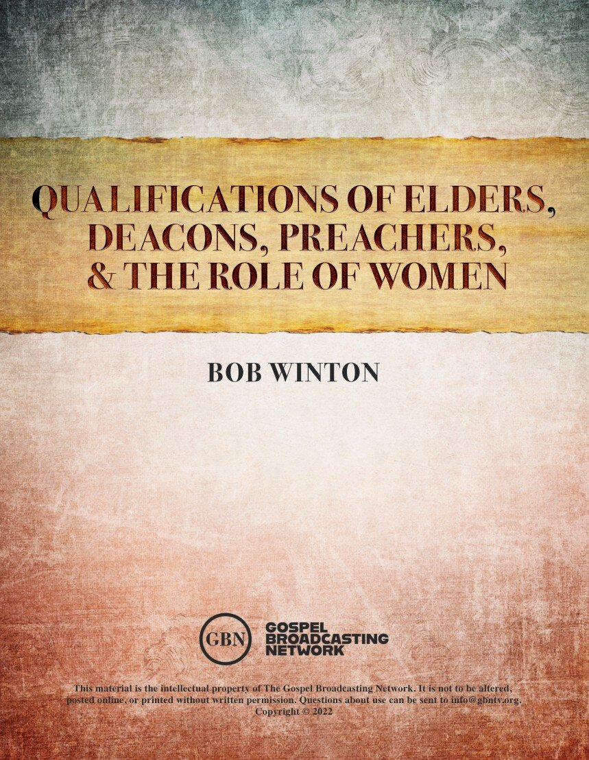 GBN Commentaries: Qualifications of Elders, Deacons, Preachers, & The Role of Women is a resource developed by the Gospel Broadcasting Network (GBN) and Bob Winton to aid in biblical study and its application to faith.